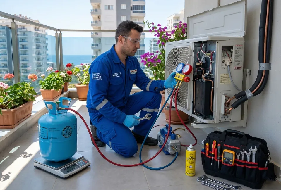 Antalya Klima Gaz Dolum Ücretleri konusu, en çok “klimam soğutmuyor” şikayetiyle birlikte gündeme gelir. Ancak önemli bir nokta var: klima gazı normal şartlarda bitmez; eksilme varsa çoğu zaman sistemde kaçak veya bağlantı noktalarında sorun vardır. Bu yüzden “sadece gaz basmak” her zaman kalıcı çözüm olmayabilir ve ücret; cihazın ihtiyacına göre yapılacak tespit, kaçak kontrolü ve uygulanacak işleme göre değişebilir. Çağ Teknik Servis olarak önce cihazın durumunu ölçer, sorunun gaz kaynaklı olup olmadığını netleştirir; ardından yapılacak işlem ve ücretlendirme hakkında sizi şeffaf şekilde bilgilendiririz. Not: Ücretler; klimanın kullandığı gaz türü (R32/R410A vb.), cihaz kapasitesi (BTU), hat uzunluğu ve kaçak/onarım ihtiyacına göre farklılık gösterebilir.